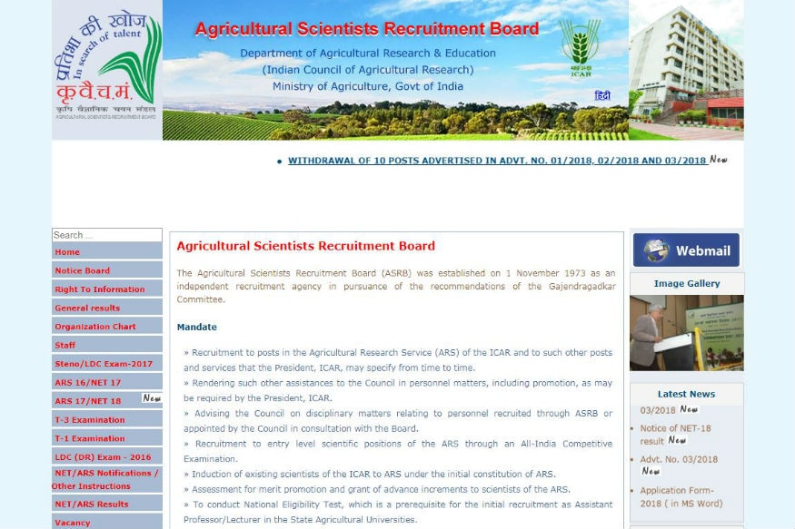 ASRB Recruitment 2018 notification to fill 31 vacancies for the post of Director, Deputy Directors General, Assistant Directors General and Project Director/ Joint Director has been released on the official website of Agriculture Scientists Recruitment Board (ASRB), New Delhi - asrb.org.in.from Top India News- News18.com https://ift.tt/2ImguO9